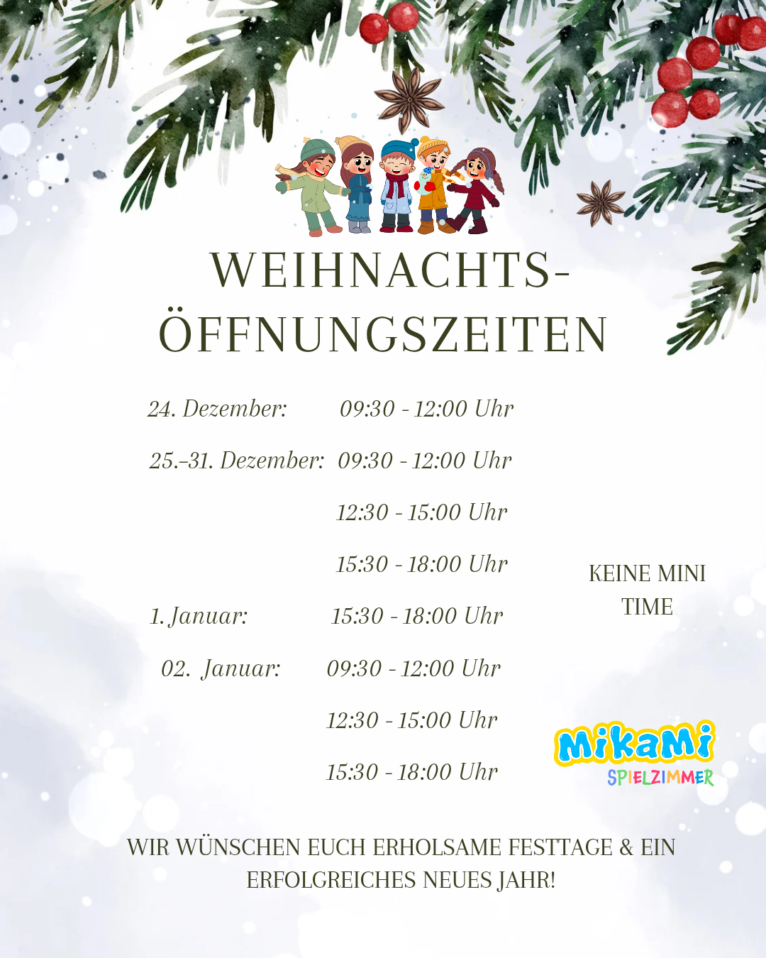 KINDER UNTER 3 SIND SELBSTVERSTÄNDLICH AUCH AUSSERHALB DER MINI TIME HERZLICH WILLKOMMEN!